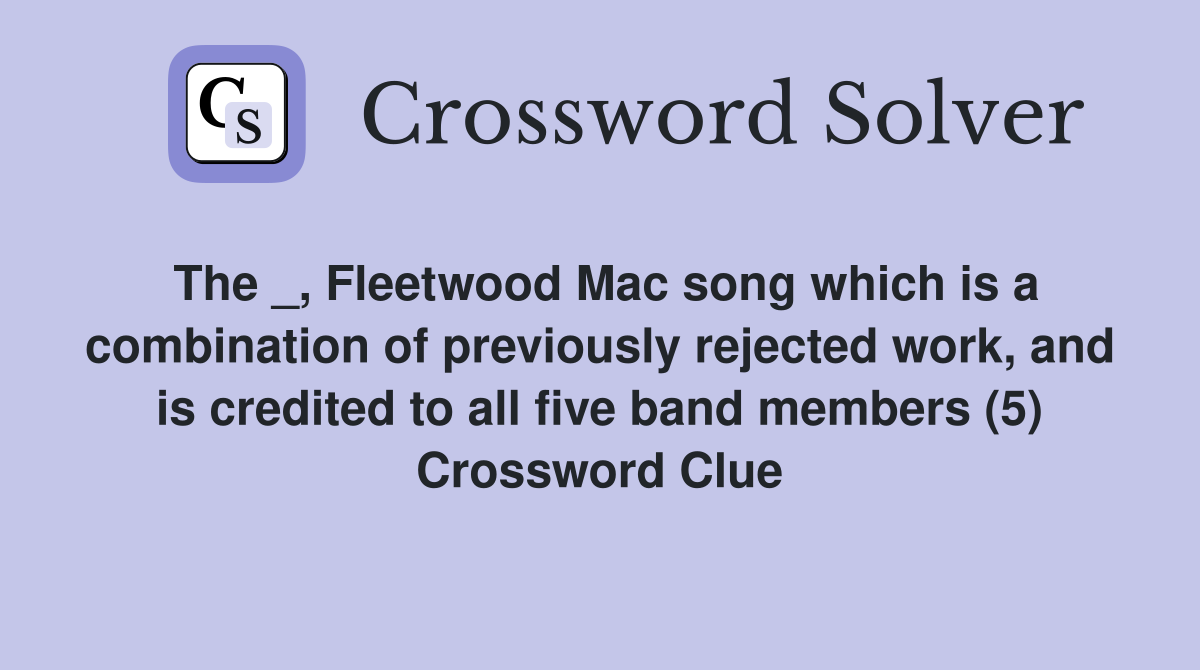 Here are the possible solutions for fleetwood mac song clue. 38 answers for the clue fleetwood mac song on crossword clues, the ultimate guide to solving crosswords. The crossword solver finds answers to. The top solutions are determined by popularity,. We solved this clue, that last appeared on august 22, 2024 in a n.y.t crossword puzzle and the answer had.
