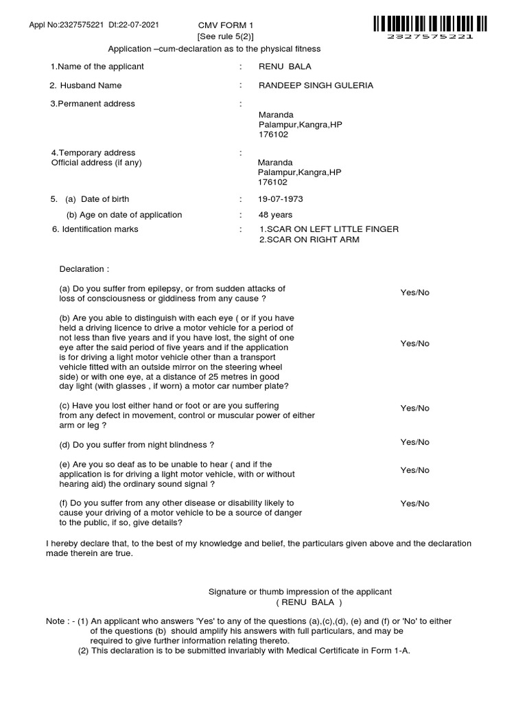Form 1 Declaration PDF Vehicles