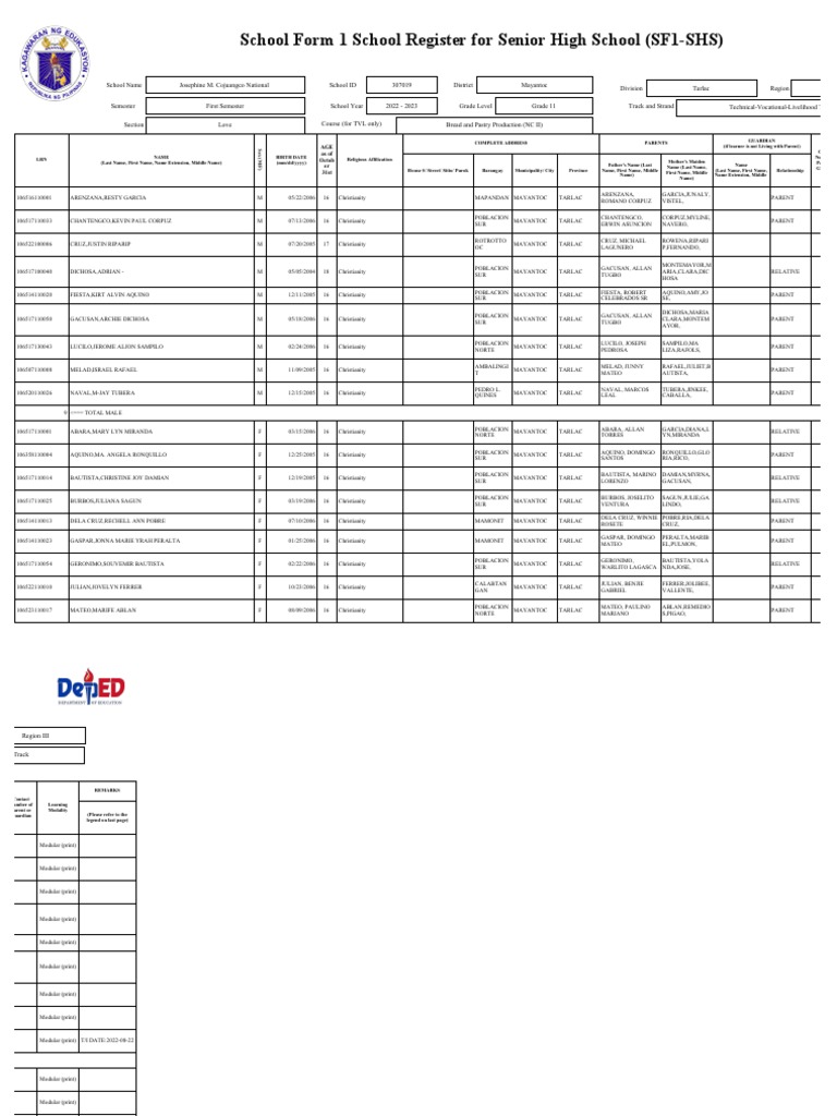School Form 1 (SF 1) PDF