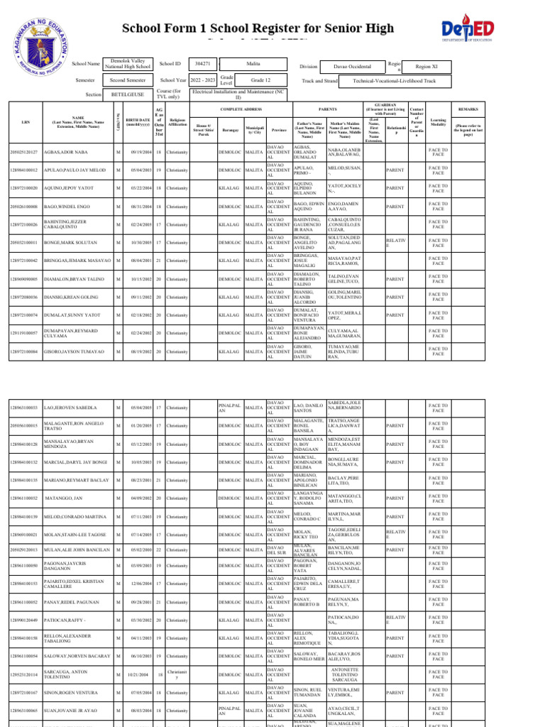 School Form 1 (SF 1) PDF Philippines Spanish East Indies