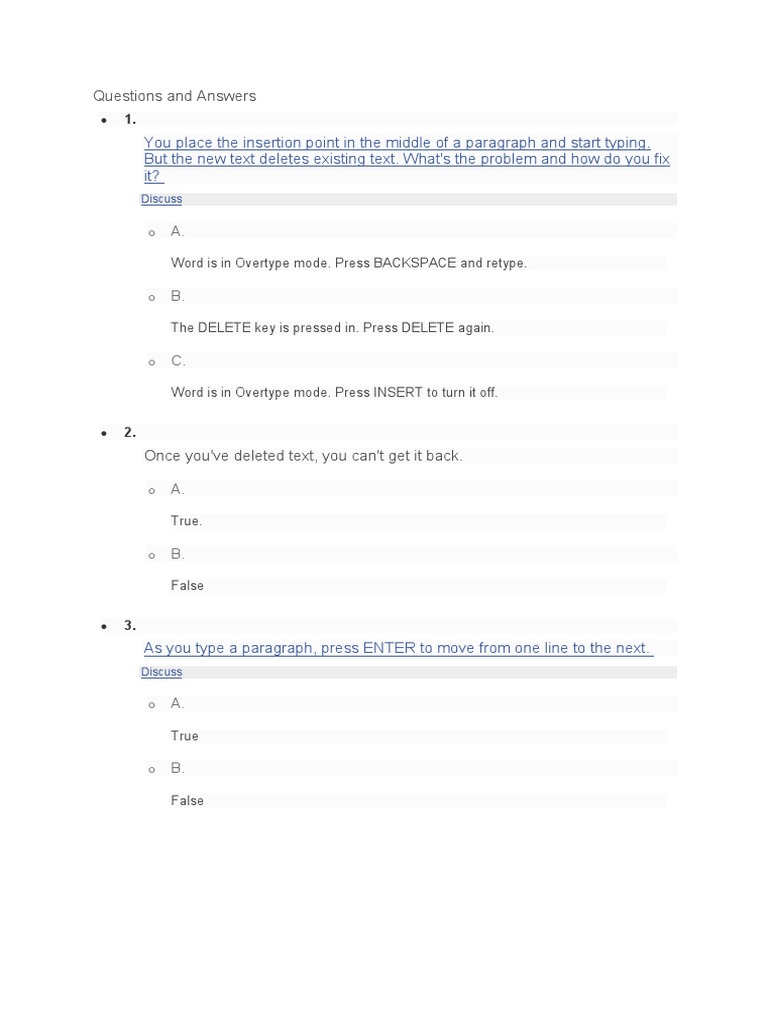 Microsoft Word 2010 Exam Questions With Answers Support For Microsoft