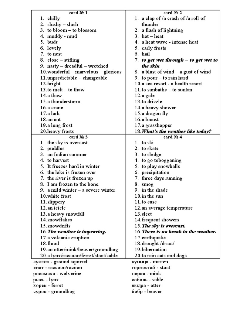 Weather Cards PDF Sky Meteorology