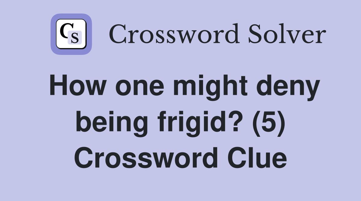 The crossword solver finds answers to classic. The crossword solver finds answers to classic crosswords and. The crossword solver found 60 answers to frigid(3), 3 letters crossword clue. All synonyms & crossword answers with 9 & 11 letters for frigid found in daily crossword puzzles: Among them, one solution stands out with a 91% match which has a length of.