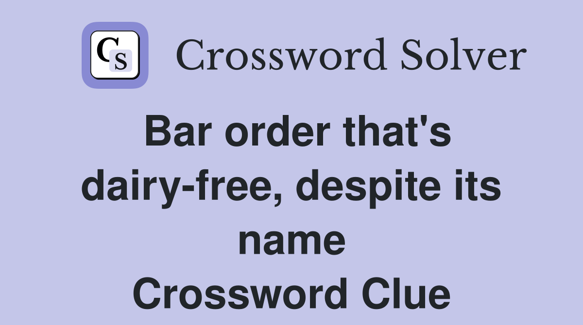 Bar order that's dairyfree, despite its name Crossword Clue Answers
