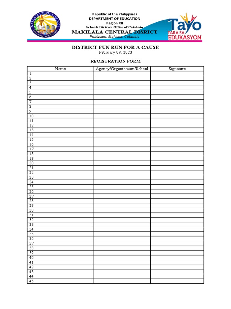 Fun Run Registration Form Sample Blogs