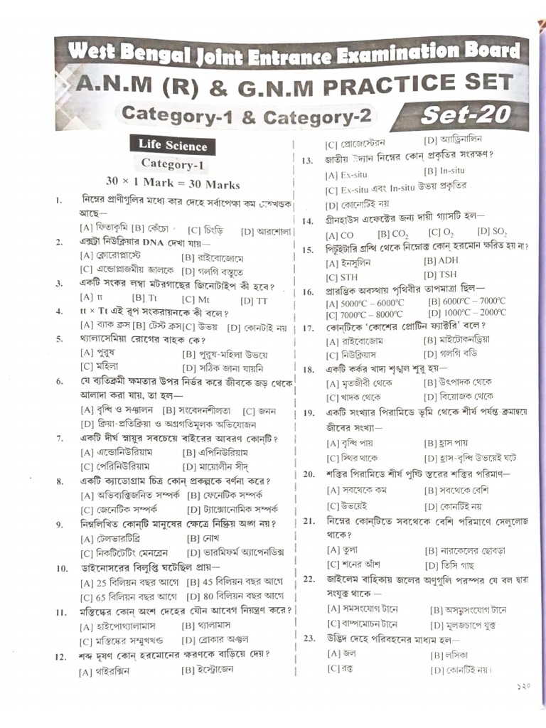 WB Behavioural Science GNM 1st Year Question (Paper 2) PDF