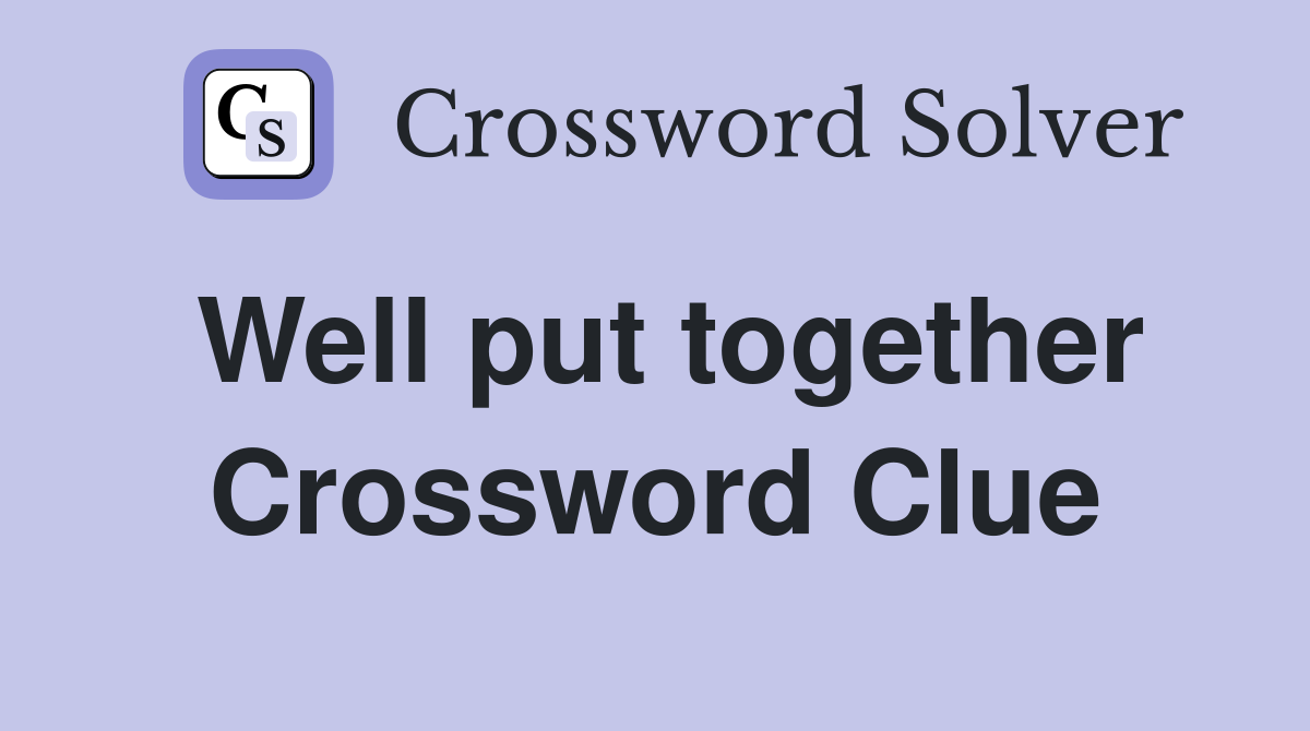 We have found 40 possible answers for this clue in our database. We have 3 solutions to the crossword puzzle go well together. Go well together is a crossword puzzle clue that we have spotted over 20 times. The crossword solver found 30 answers to go well together, 6 letters crossword clue.