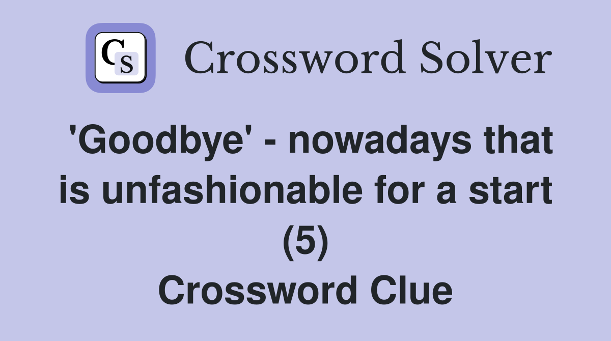 'Goodbye' nowadays that is unfashionable for a start (5) Crossword