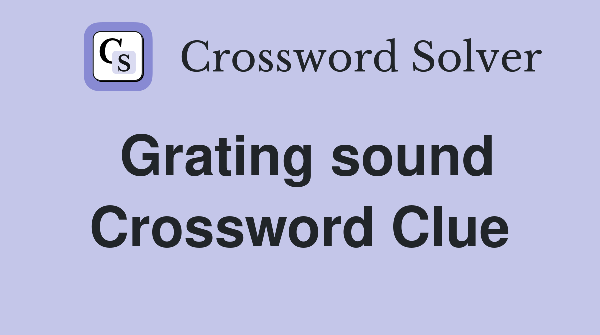 The crossword solver found 30 answers to grating sound, 6 letters crossword clue. Here is the answer for the crossword clue grating sound last seen in telegraph cross atlantic puzzle. There are related clues (shown below). The longest solution is crepitus with 8 letters and the shortest.