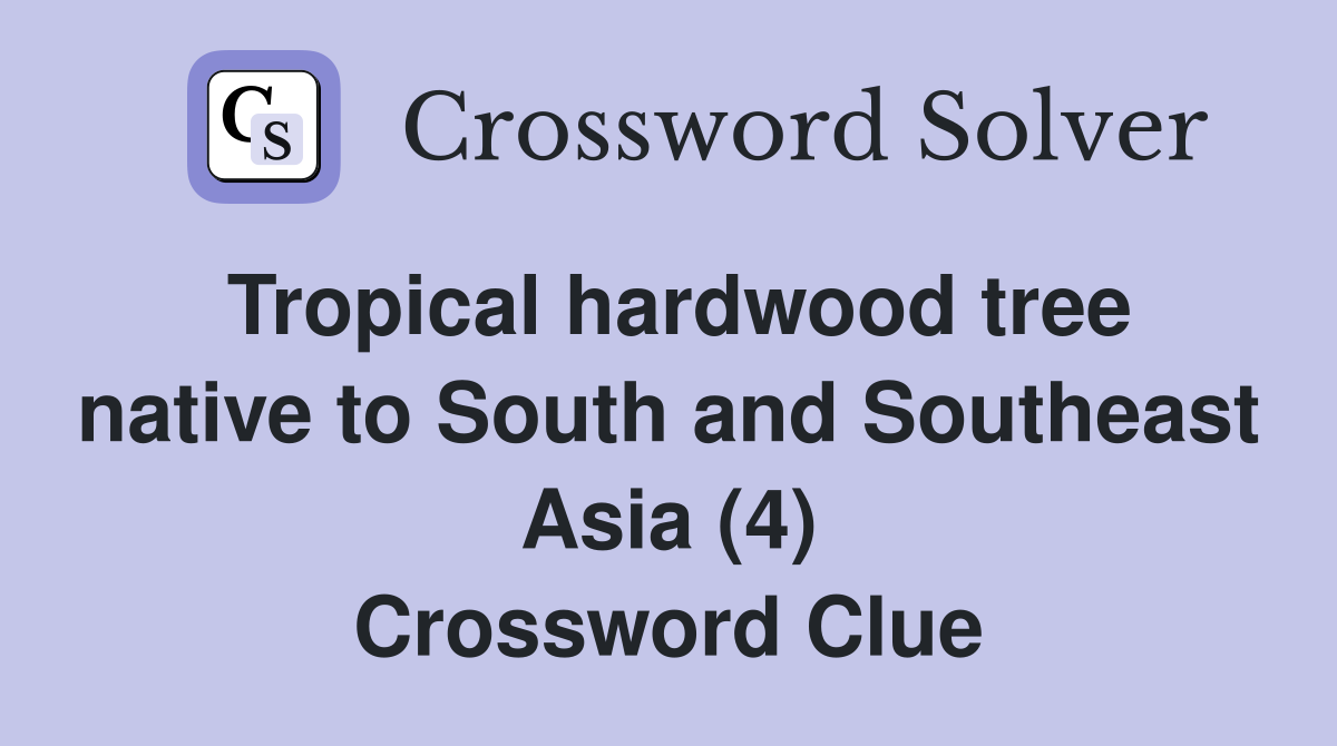 We think the likely answer to this clue is sals. Today's crossword puzzle clue is a quick one: The most common solutions for the crossword clue hardwood tree are oak with 3 letters, ash with 3 letters, elm with 3 letters, teak with 4 letters,. We found 9 answers for the crossword clue hardwood tree. A further 7 clues may.