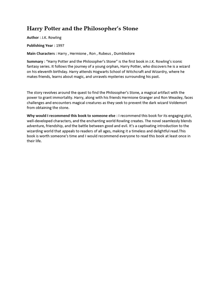 SOLUTION Summary harry potter and the philosopher s stone Studypool