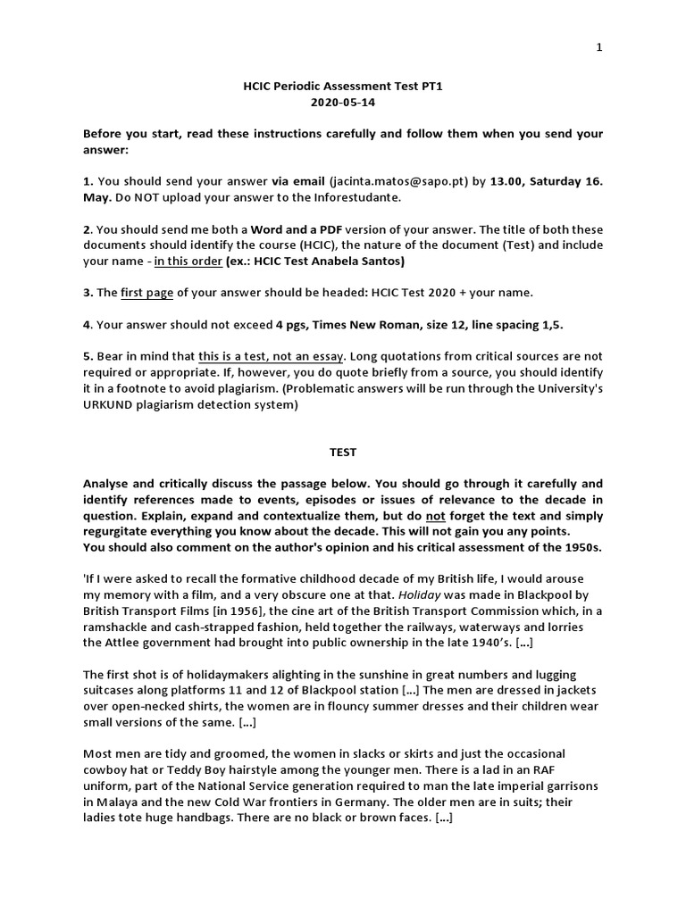 HCIC Periodic Assessment Test PT1 Analyzing a Passage on PostWar