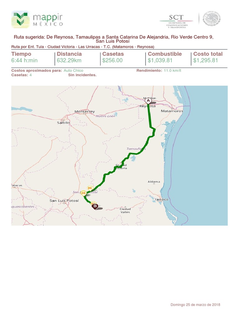 Ruta Sugerida_ de Reynosa, Tamaulipas a Santa Catarina de Alejandria