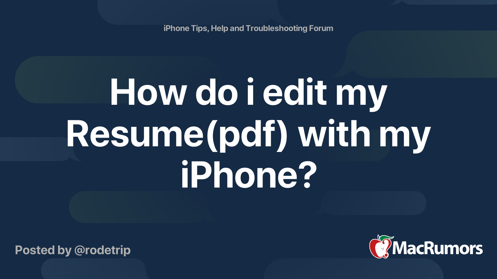 How do i edit my Resume(pdf) with my iPhone? MacRumors Forums