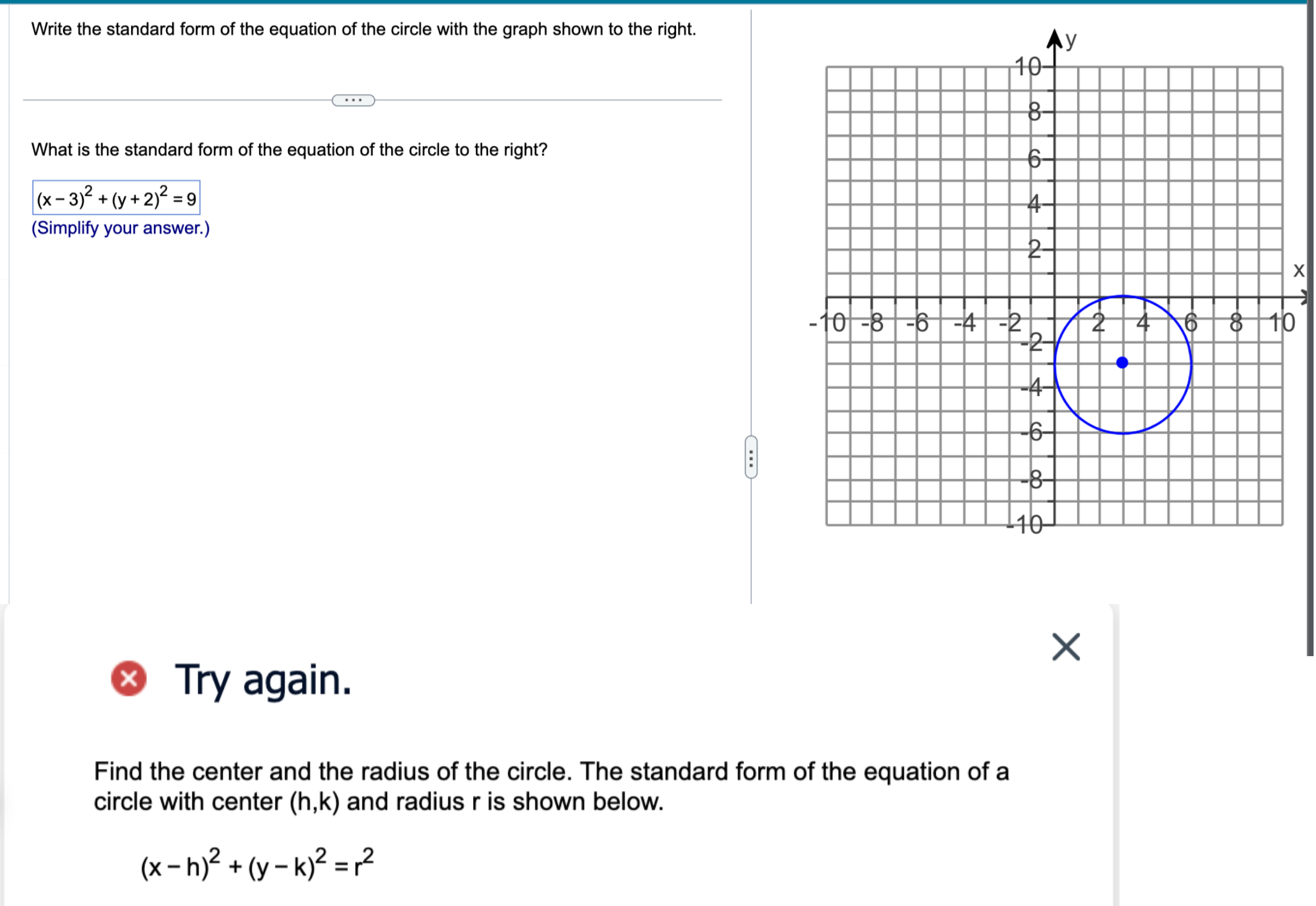 Solved Write the standard form of the equation of the circle