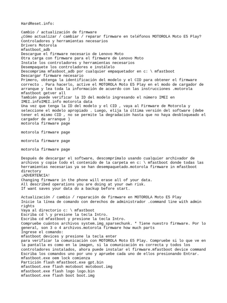 Reset Motorola Usando Mfastboot PDF Archivo de computadora Software