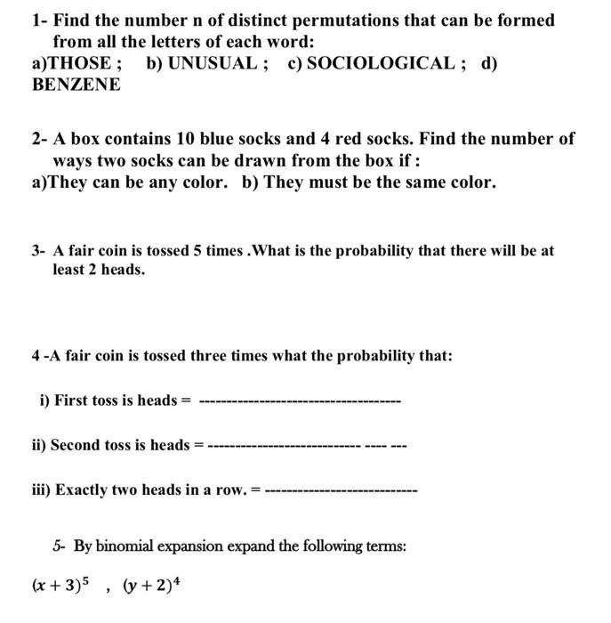 Solved 1 Find the number n of distinct permutations that
