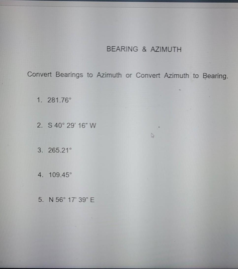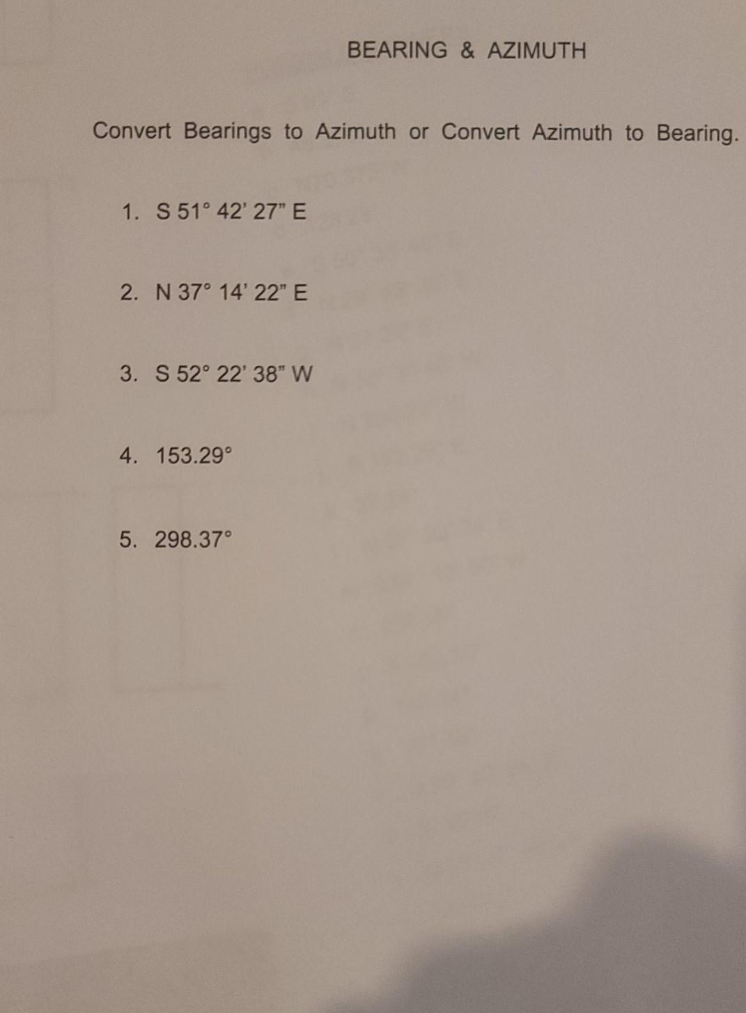 Solved BEARING & AZIMUTH Convert Bearings to Azimuth or