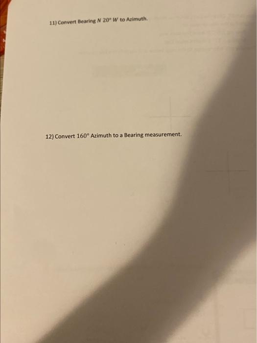 Solved 11) Convert Bearing N20∘W to Azimuth. 12) Convert