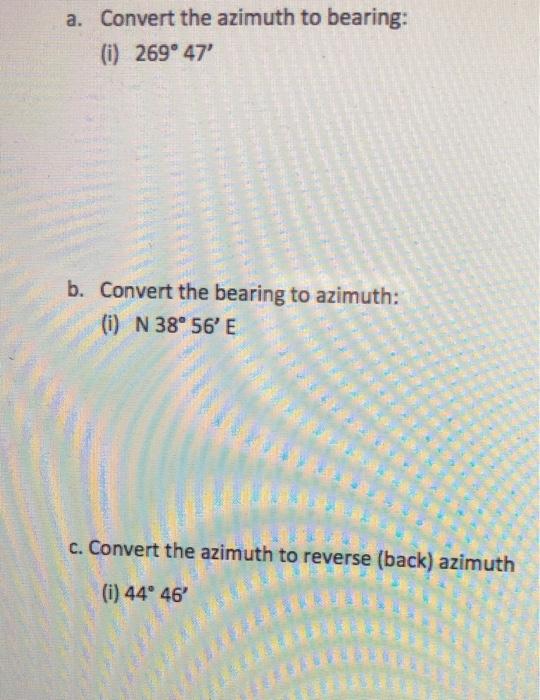 Solved a. Convert the azimuth to bearing (i) 269° 47' b.