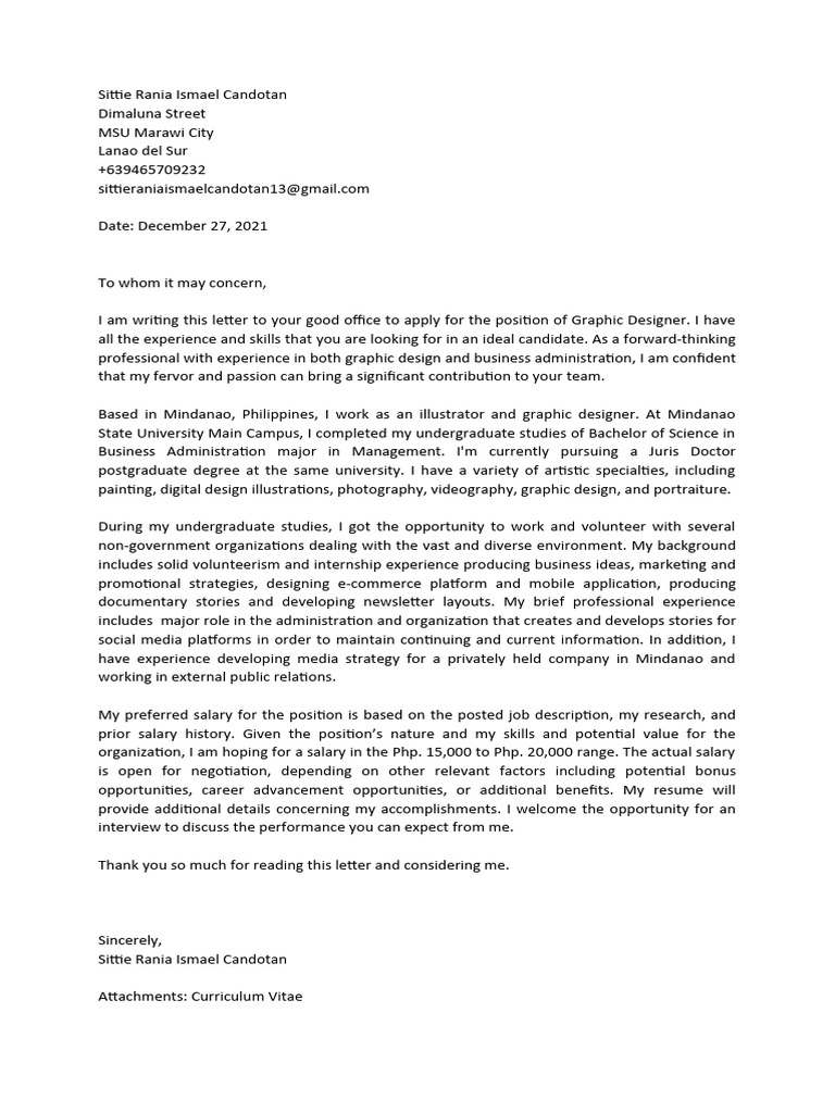 How To Write An Application Letter As A Graphic Designer - Discuss your graphic design experiences. Here’s how to write a graphic designer cover letter: Address your letter to the hiring manager by name;
