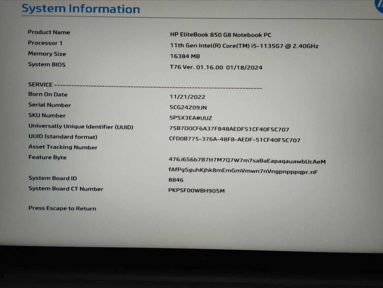 HP Elitebook 850 G8 Bios unlock Badcaps