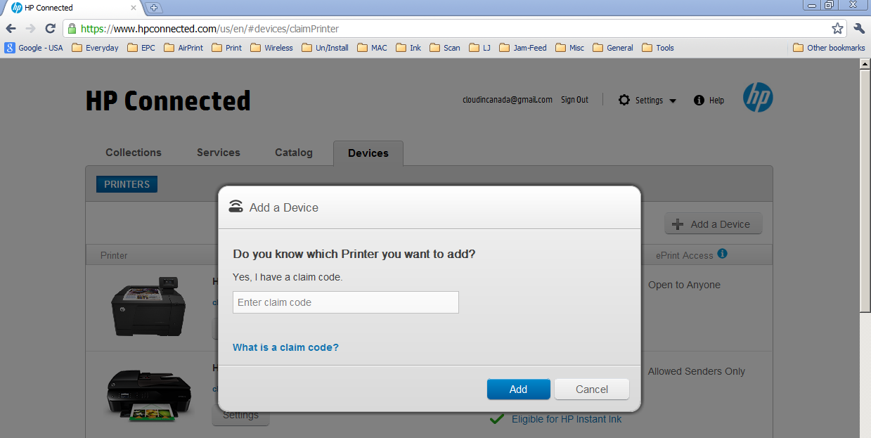 I have a HP officejet 6600 and try to enter printers claim c... HP