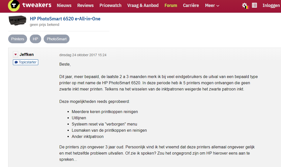If your hp photosmart 6520 printer is not printing black ink except during a print quality diagnostic, there could be several reasons for. New cartridge, soak new cartridge in alcohol/water mixture, remove all. I've tried all the potential remedies listed in the forums: You may experience that the printer output is missing black or color ink, or the printer page.