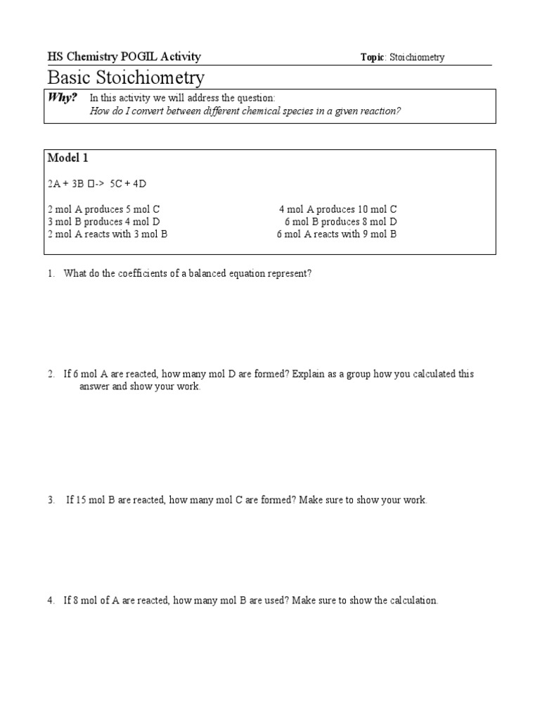 Pogil Stoichiometry Answer Key Model 2