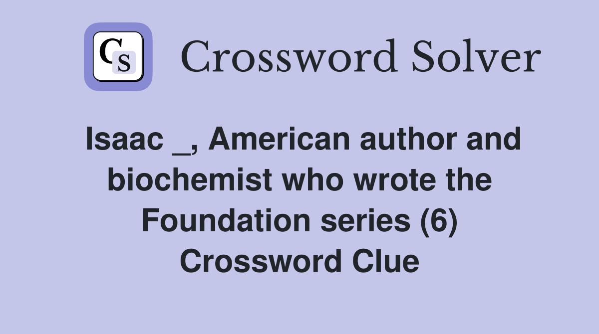 Here is the answer for the crossword clue isaac ___: We have found 40 possible answers for. The crossword solver finds answers to classic. Here is the answer for the crossword clue i, robot author isaac last seen in universal puzzle. It was last seen in daily celebrity quick crossword.