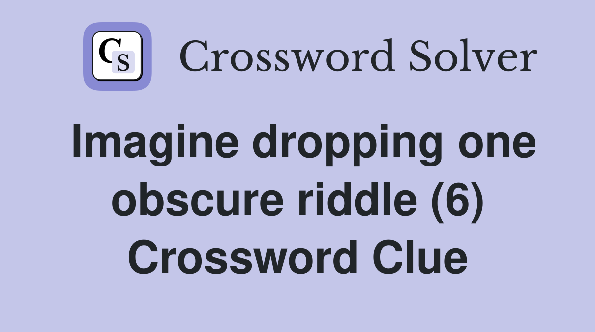 Imagine dropping one obscure riddle (6) Crossword Clue Answers