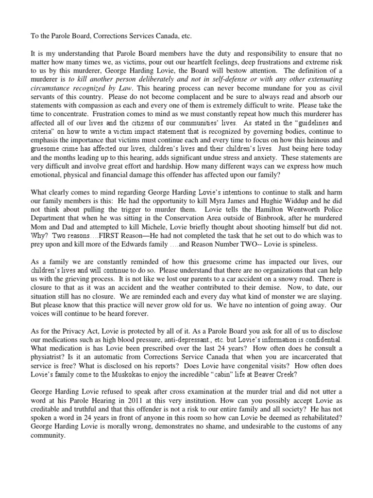 Express your experience and influence the court's decision effectively. He slammed my back over the top of my chain link fence over. Victim impact statement on november 10, 2007 jay dooley beat me. It is important for the court to know the impact this crime has had on its victims. What is a victim impact statement?