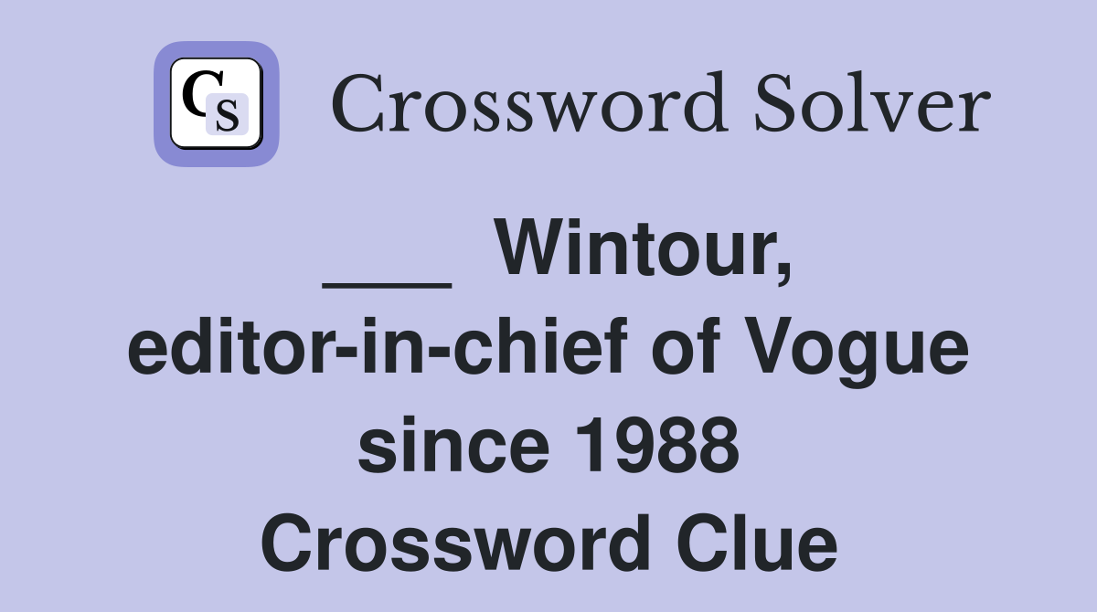 Wintour, editorinchief of Vogue since 1988 Crossword Clue Answers