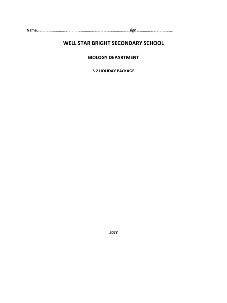 S.2 Holiday Package PDF Cell (Biology) Nature