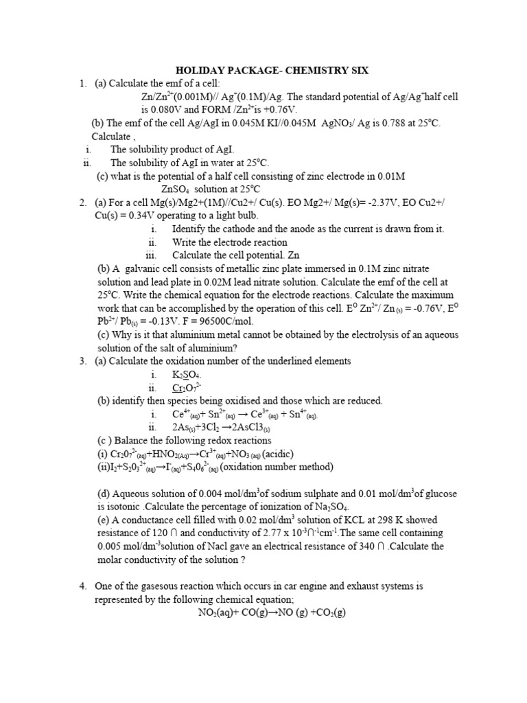 Chemistry Holiday Package Form Six. PDF