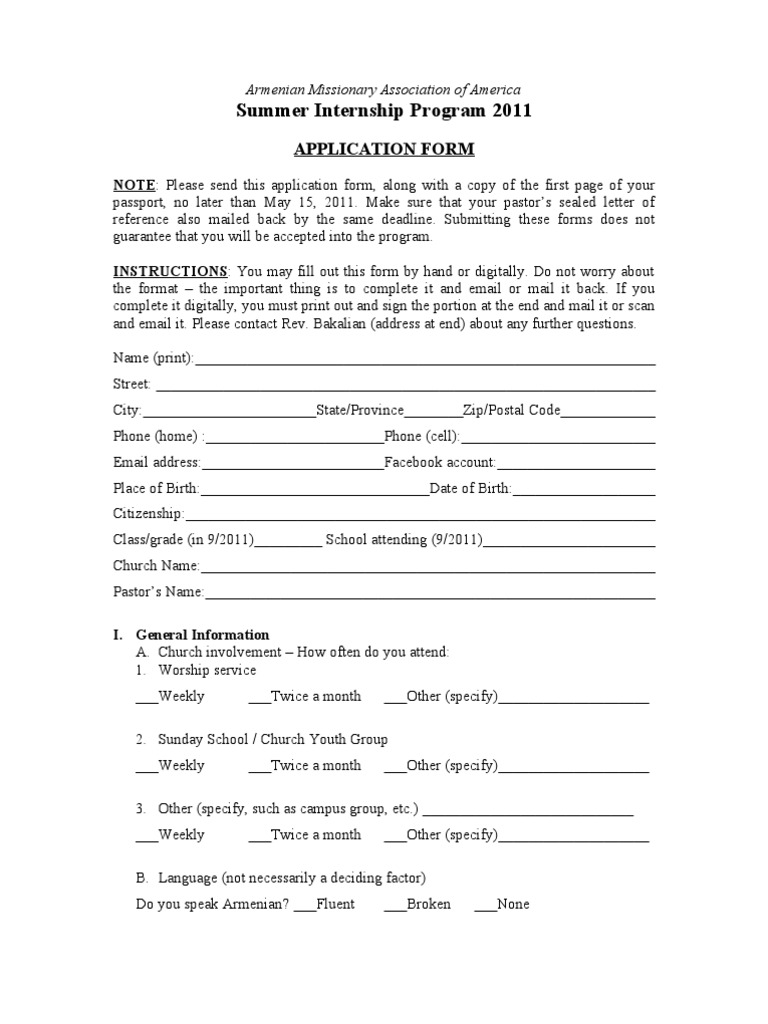 Internship Application Template