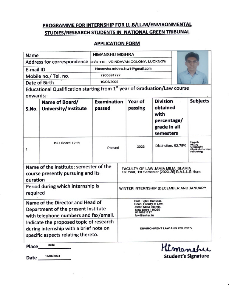 Winter Internship Application Form PDF Academic Degree
