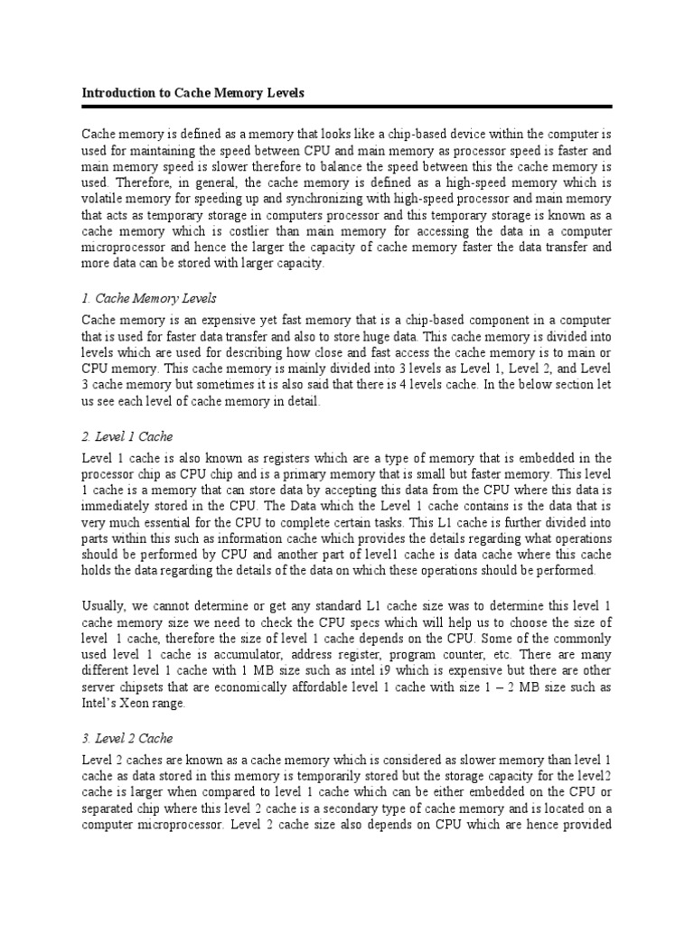 An Overview of Cache Memory Levels from L1 to L3 and Their
