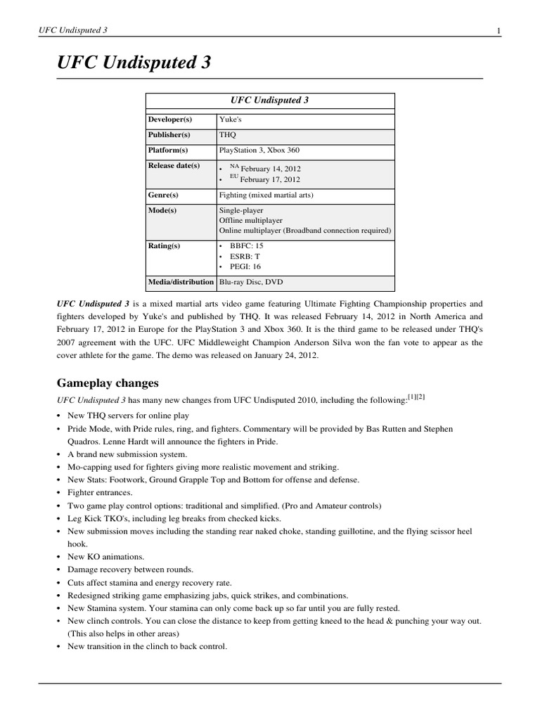 UFC Undisputed 3 Gameplay Changes PDF Ultimate Fighting