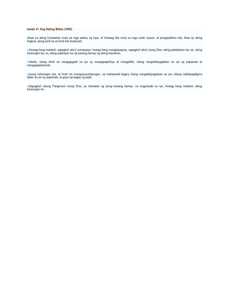 Isaiah 41 10 Meaning Tagalog - Palalakasin kita at tutulungan, iingatan at ililigtas. Nakaulat ito sa isaias 41:10: Ako'y sasaiyo, huwag kang matakot, ako ang iyong diyos, hindi ka dapat mangamba. “huwag kang matakot pagkat ako’y sumasaiyo, huwag manlupaypay pagkat diyos mo ako; (1) kasama natin si jehova, (2) siya ang ating diyos, at (3) tutulungan niya tayo. Ayaw pagtalaw, kay ako mao ang imong dios; Kailangan natin ang mga katiyakang. Ayawg kabalaka, kay ako imong diyos. Bibigyan kita ng lakas at tutulungan, aalalayan. “ayawg kahadlok, kay ako nagauban kanimo.
