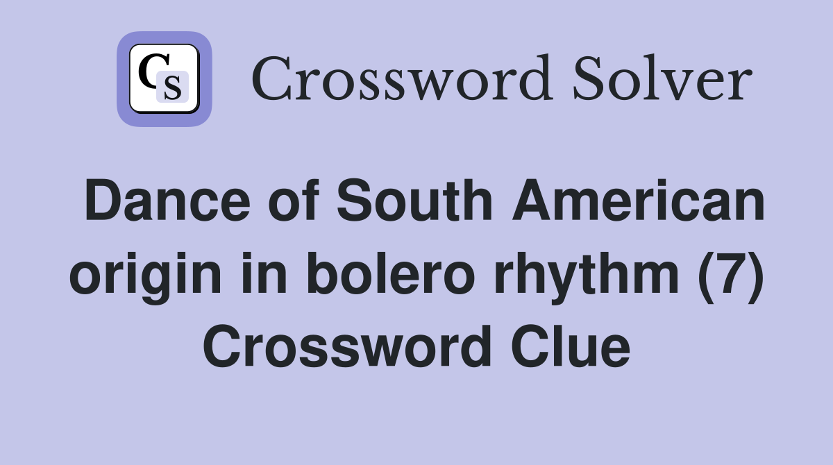 Dance of South American origin in bolero rhythm (7) Crossword Clue