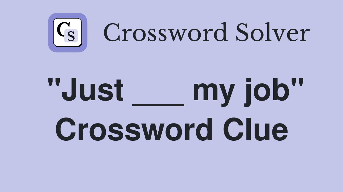 "Just ___ my job" Crossword Clue Answers Crossword Solver