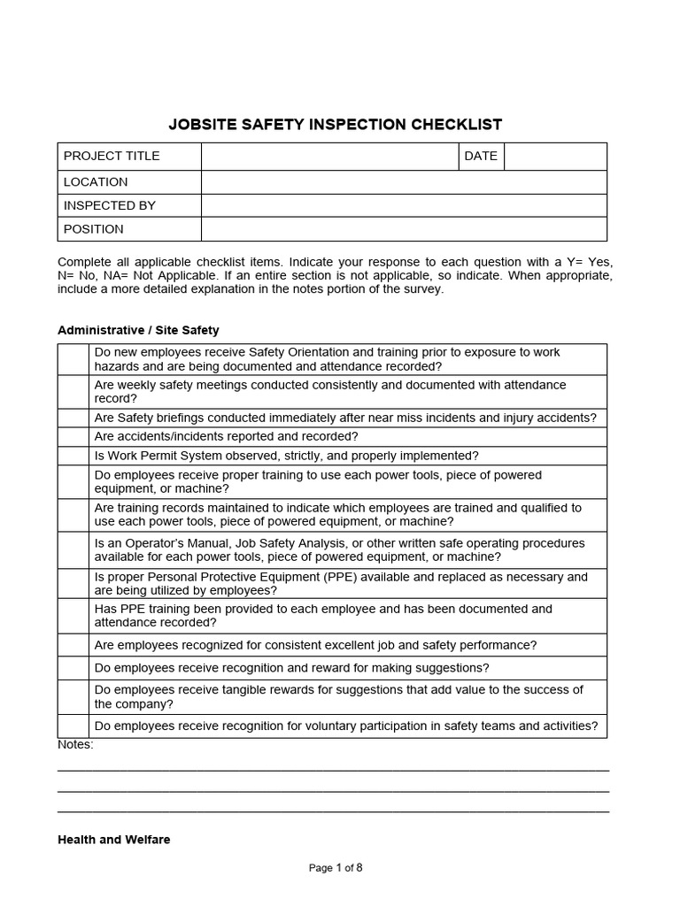 JobSite Safety Inspection Checklist PDF Safety Equipment