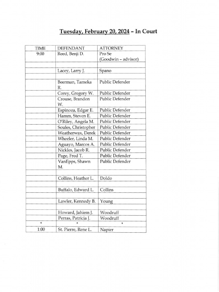 Jefferson County Court Calendar Feb. 20, 2024 PDF