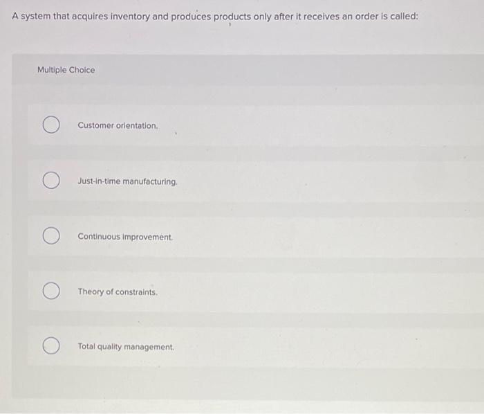 Solved TF Qu. 17 Justintime manufacturing is a system.