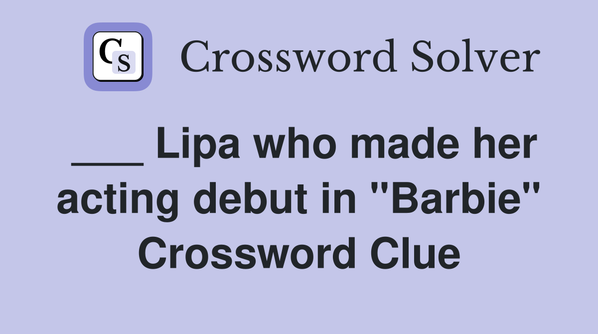 Lipa who made her acting debut in "Barbie" Crossword Clue Answers
