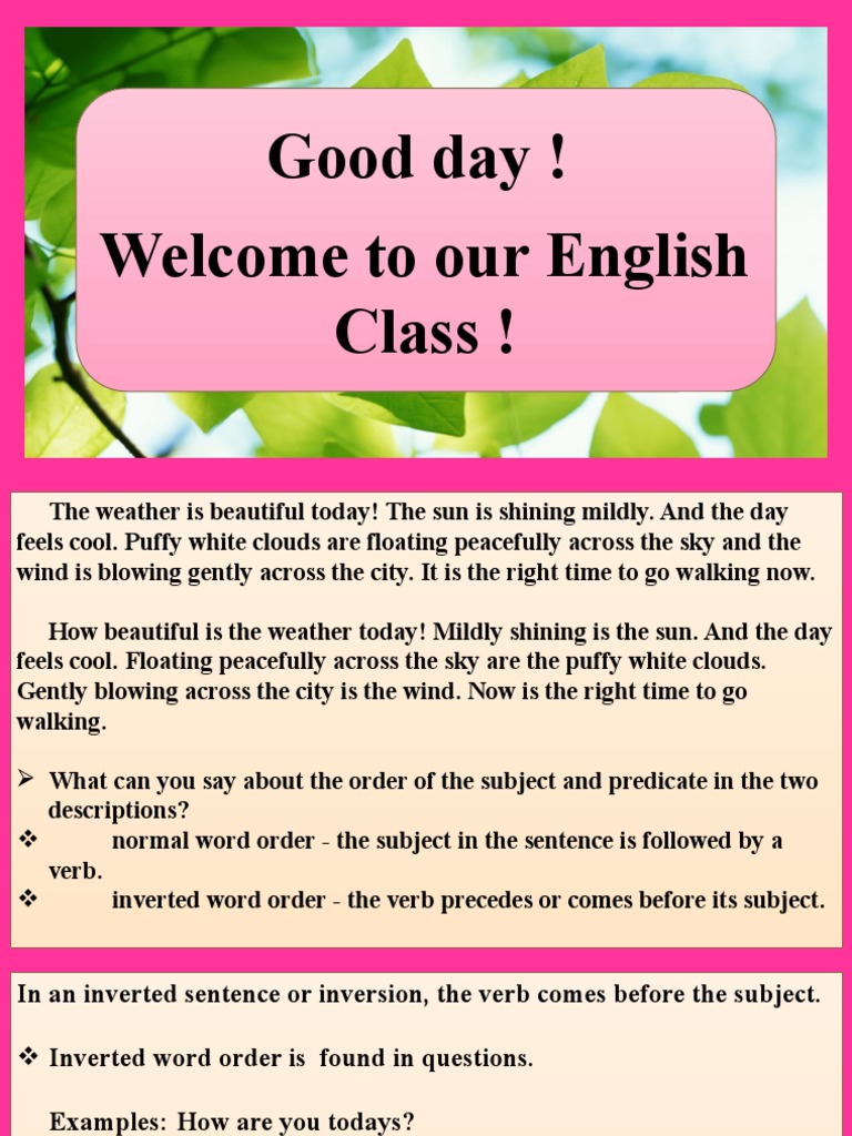Lesson 6 (GRADE 9) Using Normal and Inverted Word Order in Creative
