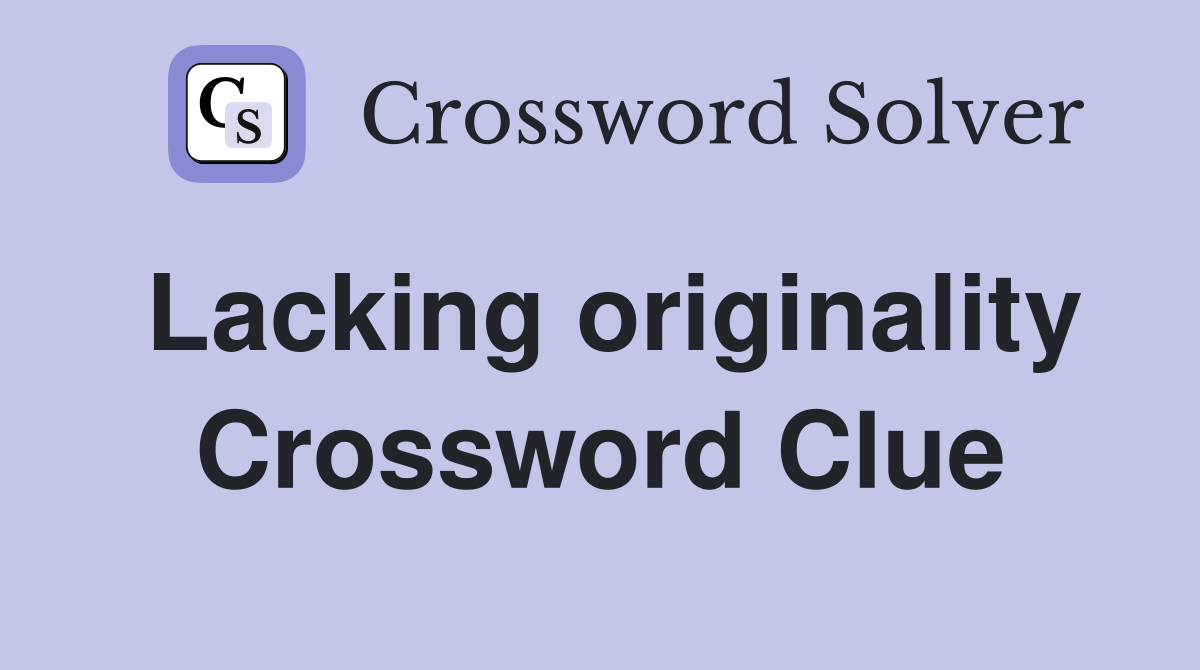 Please note that sometimes clues appear in similar. We have found 40 possible answers for this clue in our database. Here is the answer for the crossword clue lacking in originality. See answer for lacking originality nyt crossword clue which will help you find solution. Last confirmed on september 22, 2024.