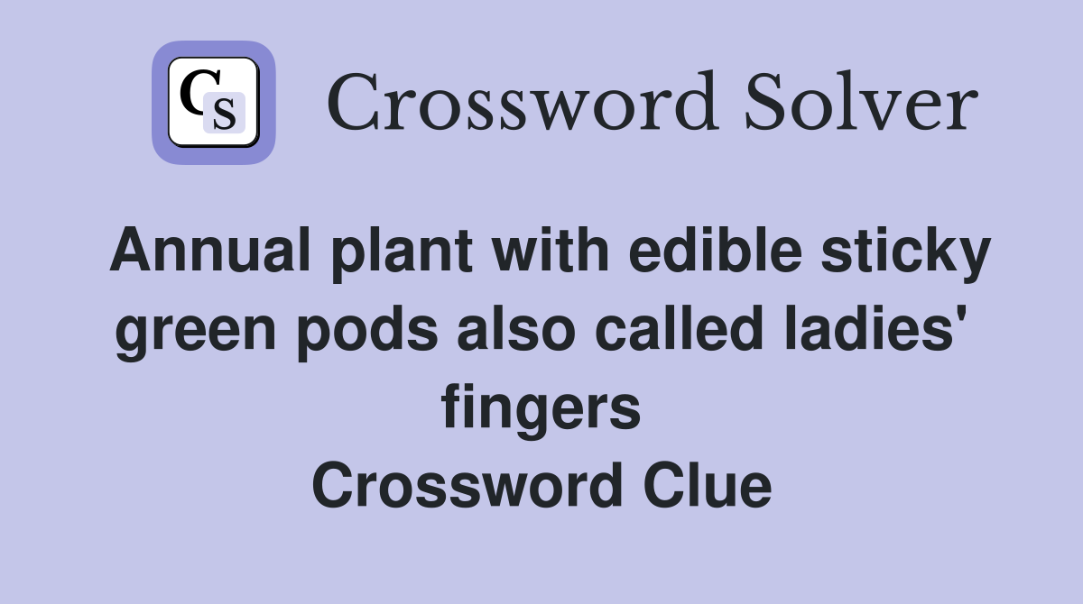 We have found 40 possible answers for this clue in our database. Here is the answer for the crossword clue ladies' finger. The crossword solver finds answers to classic. Today's crossword puzzle clue is a quick one: We will try to find the right answer to this particular crossword clue.