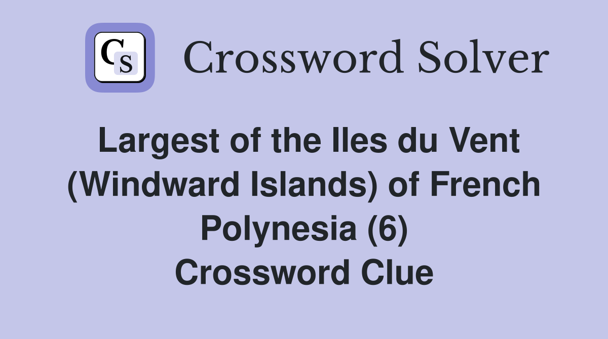 Here is the answer for the crossword clue largest of the society islands last seen in new york times puzzle. Here are the possible solutions for largest of the society islands clue. There is one answer total, tahiti is the most recent and. The crossword solver found 30 answers to largest of the society islands (6), 6 letters crossword clue.